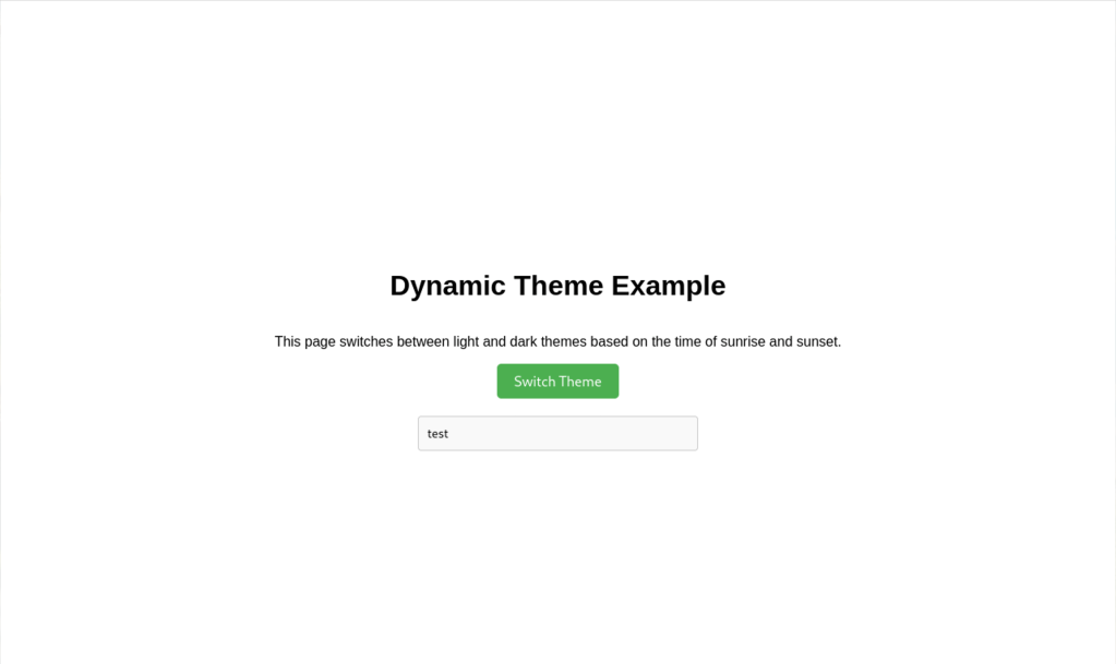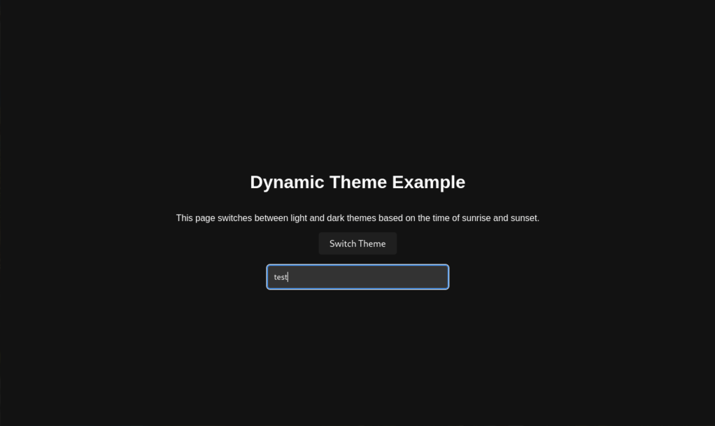 <p>This page dynamically switches between light and dark themes based on the time of sunrise and sunset at your location.</p>